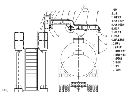 特點:鶴管安裝在棧橋上,頂部完全密閉裝卸車,法蘭接口氣相朝上,液相朝下。