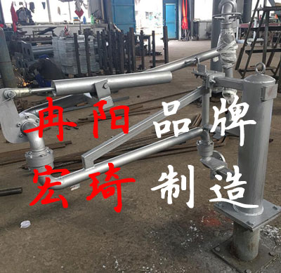 4.垂管及附件安裝:拉下外臂,將垂管及墊片按總圖所示用M10*60螺栓連接在垂管鋼法蘭上,再將其他附件意圖安裝,按包絡(luò)線位置將裝卸臂收到收攏狀態(tài)。