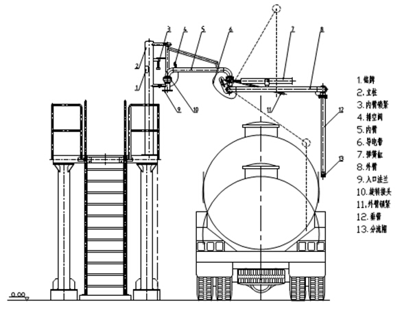 6.垂管(或者外伸臂):與槽車或者槽船對接部分。