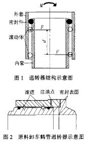 從各種裝卸鶴管使用情況分析:鶴管的泄漏主要是因?yàn)殄霓D(zhuǎn)器的結(jié)構(gòu)不合理和密封件性能不好所造成的。迥轉(zhuǎn)器結(jié)構(gòu):