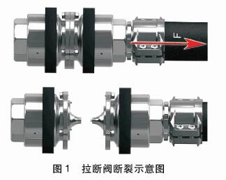 其實(shí)質(zhì)上是為裝車臂設(shè)置一處弱點(diǎn),當(dāng)整條裝車臂受到不可控應(yīng)力情況下,拉斷閥承受的拉力大于額定值時(shí),拉斷閥能夠及時(shí)斷裂,避免裝車臂其他結(jié)構(gòu)受力破損。與此同時(shí),拉斷閥另一項(xiàng)重要功能就是其斷裂面兩端會(huì)自動(dòng)封閉,防止危險(xiǎn)品介質(zhì)泄漏。