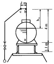昆明地區(qū)某油庫接卸70號(hào)車用汽油.密度p=720kg/m3.運(yùn)動(dòng)粘度v=0.6×10-6m2/s.下裝鶴管大流量Q=58m3/h.下裝鶴管流速。h=2.05m/s.下裝鶴管的水力坡度i=0.0505.計(jì)算長度為m(L=5m.Ld=4m).當(dāng)?shù)馗哂蜏?C.該溫度下70號(hào)車用汽油的汽化壓力p。=65704.6Pa.當(dāng)?shù)卮髿鈮簆a=80218.4Pa.現(xiàn)進(jìn)行下裝鶴管氣阻校核.下裝鶴管氣阻校核示意圖見圖2。