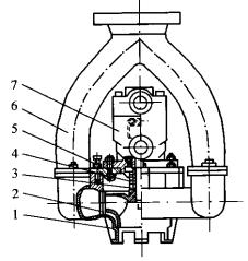 圖4液動(dòng)潛油泵結(jié)構(gòu)圖1—泵體:2—葉輪:3—軸套:4—機(jī)械密封:5—泵蓋:6—輸油管:7—馬達(dá)液動(dòng)潛油泵技術(shù)比較成熟,從根本上解決了氣阻、汽蝕問題,使用效果較好,其缺點(diǎn)是要進(jìn)行較大幅度的工藝改造,投資費(fèi)用較高及設(shè)備安裝操作復(fù)雜。