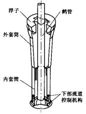 進(jìn)入下裝鶴管。與此同時(shí),部分溫度低的油料也會(huì)進(jìn)入中部內(nèi)、外套筒之間的流道,起到混層降溫的作用,以防止因上部油溫過高在此造成氣阻。隨著卸油過程的進(jìn)行,液面不斷下降,浮子和外套筒也隨著下降,當(dāng)浮子下降至一定高度(一般為1.2~1.3m)時(shí),外套筒下緣觸及下部流道控制機(jī)構(gòu)的頂桿在重力作用下,密封環(huán)被提起,使油料從內(nèi)套筒下部進(jìn)入下裝鶴管,直至卸完。