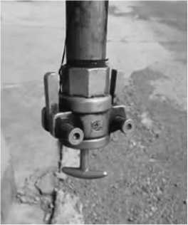 (2)低溫拉斷閥拉斷螺桿斷裂密封失效(圖4)。DN50mm拉斷閥拉斷強(qiáng)度應(yīng)力為13kN,DN25mm拉斷閥拉斷強(qiáng)度應(yīng)力為4.8kN。拉斷閥大拉力強(qiáng)度原則上將純軸向張力作為計(jì)算基礎(chǔ),即管線收到的張力平均分配到3顆拉斷螺桿上。在實(shí)際工況下,拉斷閥受到斜向張力,斜拉角度越大,張力負(fù)荷越集中在一顆或多兩顆拉斷螺桿