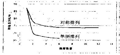 某油庫,棧橋共有航煤裝卸鶴管12根,間距12米,支管內(nèi)徑100mm,主管內(nèi)徑150mm,管材為無縫鋼管,泵機采用變頻器調(diào)節(jié)。對裝卸鶴管收油單側和對稱布置情況的運行工況進行了模擬計算研究。計算結果如圖2所示。