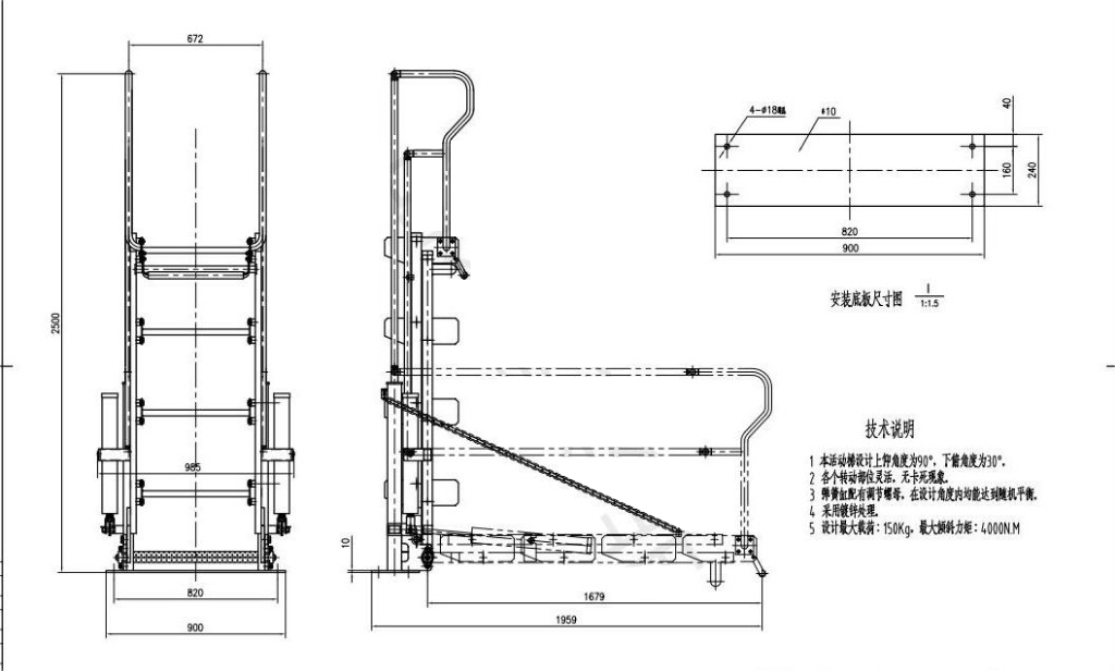 活動(dòng)梯連接尺寸見(jiàn)附包絡(luò)線圖……