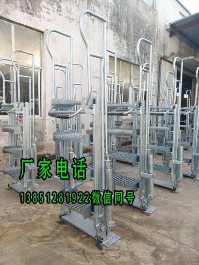 架、下框架、齒型踏步(包括前踏步、中間踏步)、防碰支腿、復(fù)位鏈條等;顒犹萆煺归L度:1250mm;活動梯欄桿寬度:600mm;