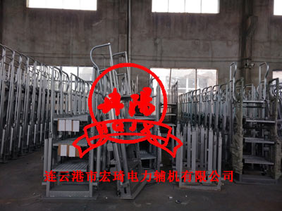 預埋地腳螺栓。通過底板上的四個F23孔將底板固定在棧橋上,或直接焊于棧橋上。安裝位置。活動梯一般裝于棧橋的邊緣。打開裝置。打開腳踏鎖緊裝置,松開一邊的鐵鏈。降下活動梯。放下活動梯,將端踏步靠在罐車上或接近罐車處。掛上鐵鏈。掛上鐵鏈。