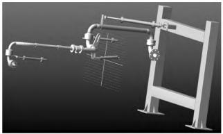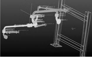 為了便于動力學(xué)分析,將Solidworks中補(bǔ)油裝卸鶴管模型進(jìn)行簡化并導(dǎo)入adams軟件,如圖6所示.