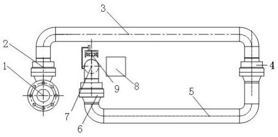 與現(xiàn)有技術(shù)相比,其顯著優(yōu)點(diǎn):垂直伸縮裝車鶴管采用三個(gè)旋轉(zhuǎn)接頭,減小了裝車鶴管設(shè)備安裝使用空間,使用靈活可靠;且垂直伸縮裝車鶴管通過牽引裝置帶動(dòng)伸縮垂管在伸縮軌道做上下運(yùn)動(dòng),自動(dòng)化程度高,工作效率高。
