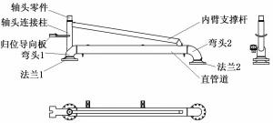 內(nèi)臂部裝主要由軸頭零件、軸頭連接柱、內(nèi)臂支撐桿、彎頭、法蘭及直管道組成(見(jiàn)圖3)。